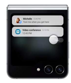 Z플립 5의 중요한 변화 중 하나는 향상된 메시지 기능입니다. 이제 사용자는 휴대폰을 펼치지 않고도 메시지에 답장할 수 있어 더욱 편리해졌습니다. 또한 위로 스와이프하면 삼성 페이에 빠르게 액세스하여 장치를 완전히 열지 않고도 간편하게 결제하고 멤버십을 사용할 수 있습니다.