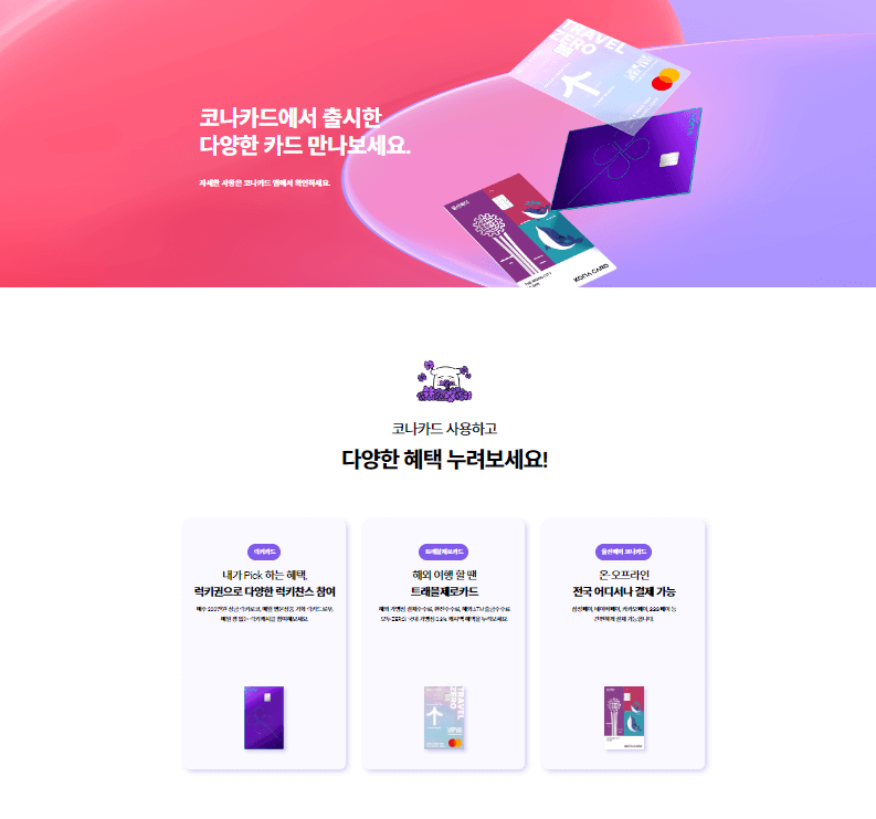 코나 트래블제로카드는 코나카드 앱에서 신청할 수 있으며 연회비는 없습니다. 해외 여행이나 직구를 자주 하시는 분들에게 적합한 카드입니다.