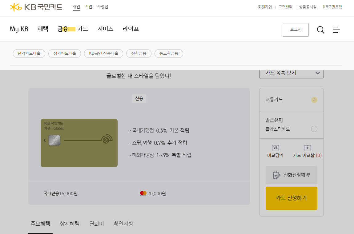 KB국민 가온 글로벌 카드입니다. 이 카드는 해외구매대행 전문가들이 가장 많이 사용하는 카드입니다.