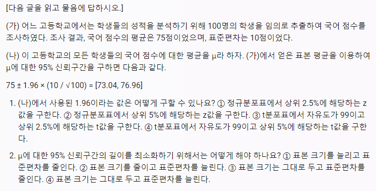 수학 영역의 경우에도 확률과 통계의 내용이 일부 변경됨에 따라 이산확률변수나 연속확률 변수의 구분은 없어지고 분산의 정의가 단순화 되고 통계적 추론은 추가되었습니다. 예상 문제 하나 풀어보도록 하겠습니다.